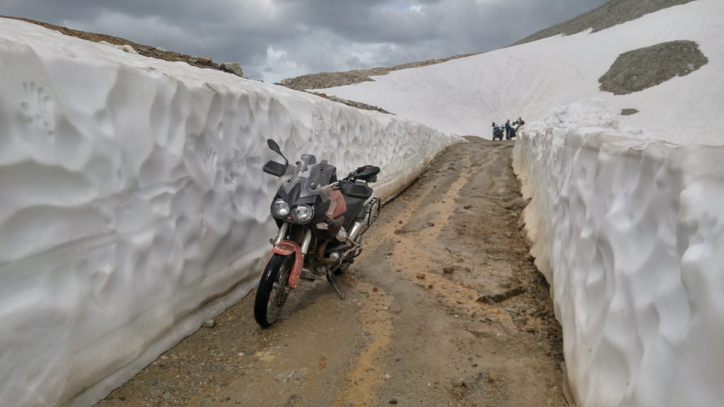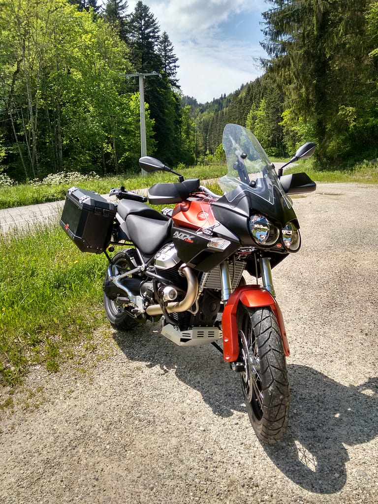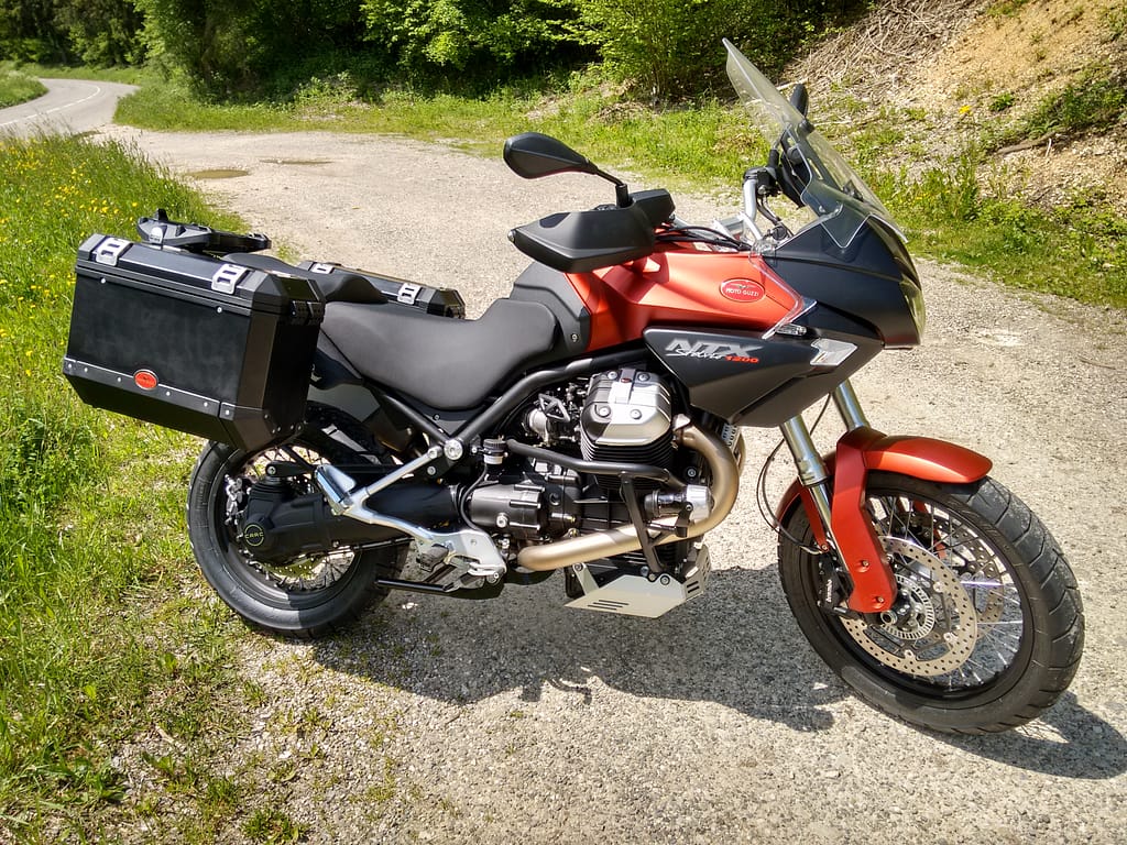 Wenn die 296kg Leergewicht (ohne 75kg Fahrer; kriegt dieser Normfahrer sie überhaupt vom Ständer?) mal in Schwung sind, ist die Diva erstaunlich behände und wendig. Ins schwere Gelände habe ich mich noch nicht getraut aber die Hard Alpi Tour im September 2018 erfolgreich bewältigt. Natürlich im Verbund mit einer zweiten Stelvio.