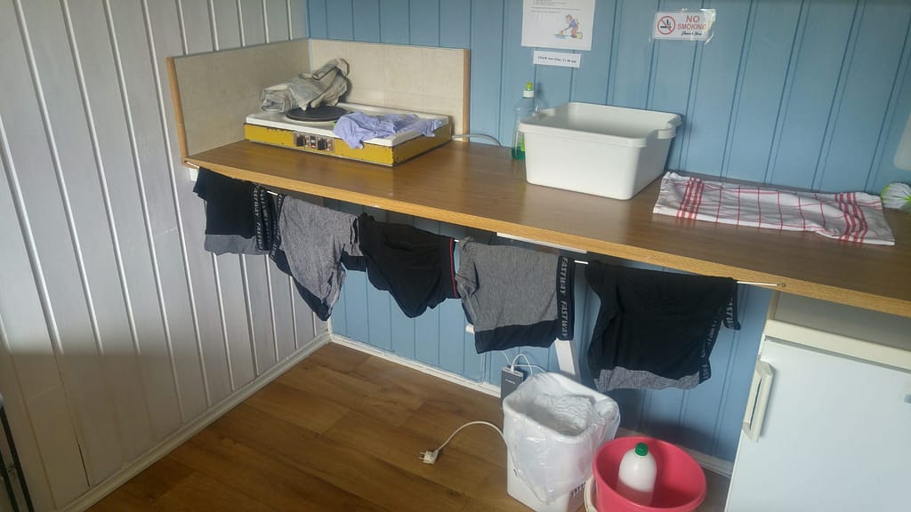 Richtig! Wäsche waschen. Das war schon in Rovaniemi so, und ist hier nicht anders.