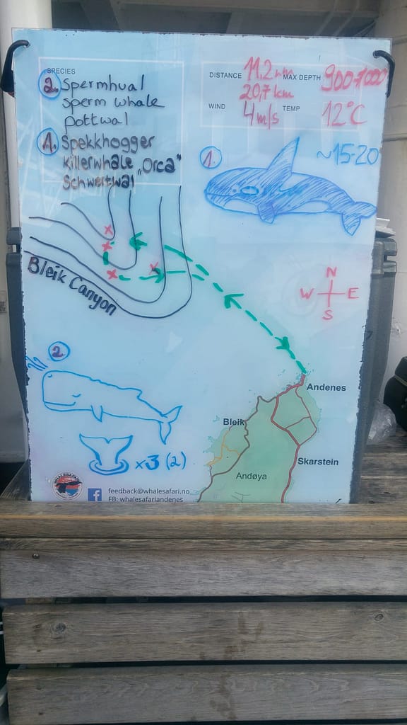 Dann endlich zur Hvalsafari AS. Start um 14:15 mit dem Einschreiben (ich habe am Vorabend gebucht), um 14:45 ging es dann im Museum los. Die Führung wurde gesplittet (Deutsch, Englisch, Norwegisch, Italienisch) und ab ging es mit Astrid für 45 min. Alles war sehr informativ mit grossen Plakaten und wenig Text (also perfekt für die heutige Smartphonejugend).