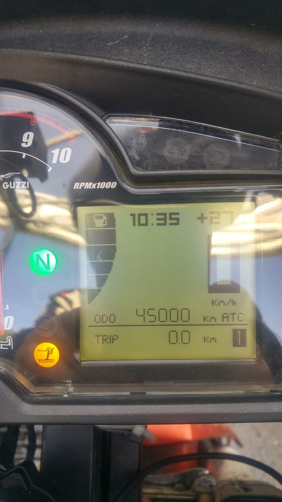 Aktuell hat er 9066 km drauf, 9800 schaffe ich auch mit dem Pirelli Scorpion Trail II.